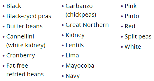 *Mature beans, peas, and lentils (such as black beans, kidney beans, black-eyed peas) are included in your peanut butter/ bean benefit