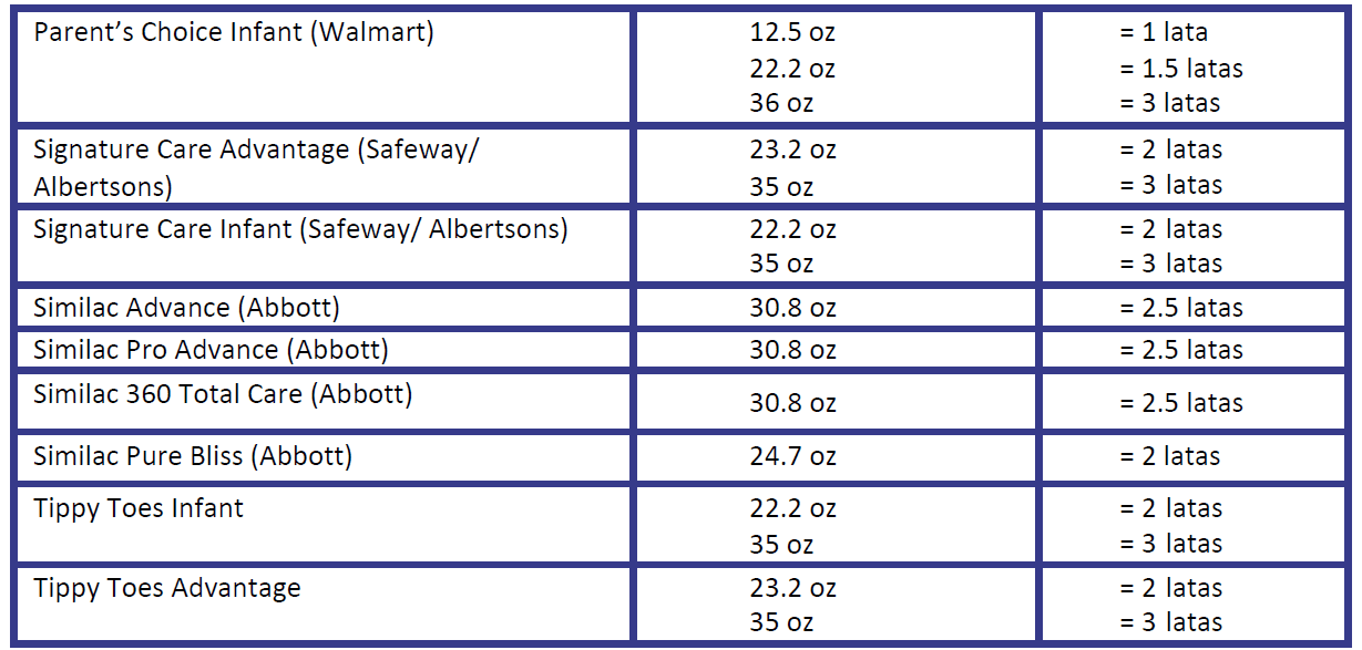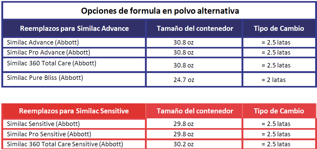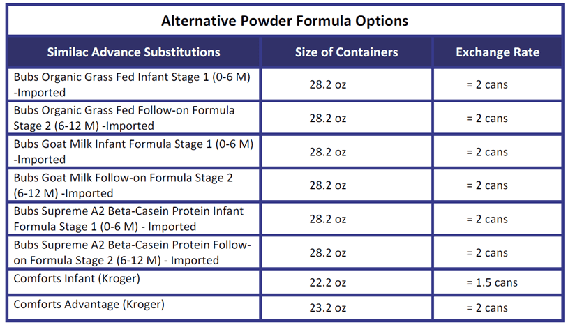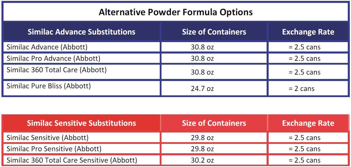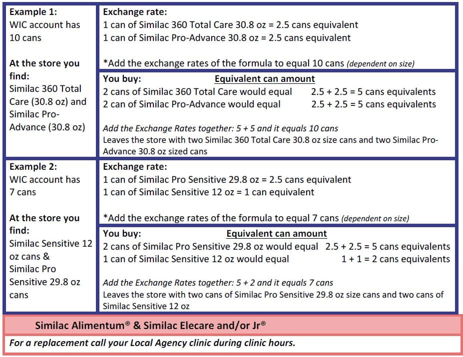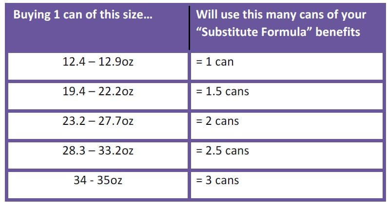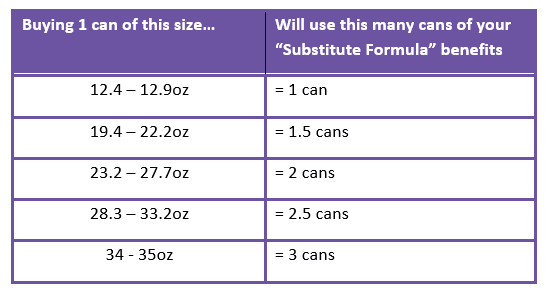 Beginning March 1st, 2023 if your benefit balance lists Substitute Formula for Recall then you may only buy Similac formulas in the larger size cans. See full list of available formulas below: