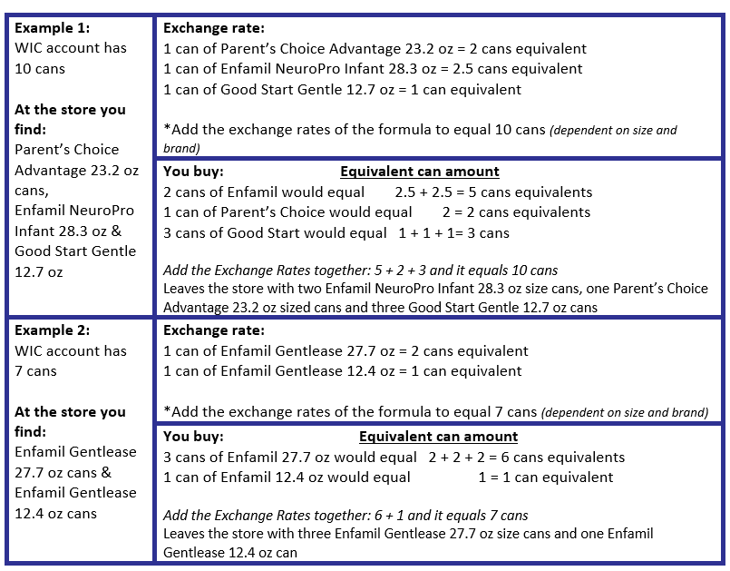 the exchange rate in the chart. - Call your WIC clinic if you have questions.