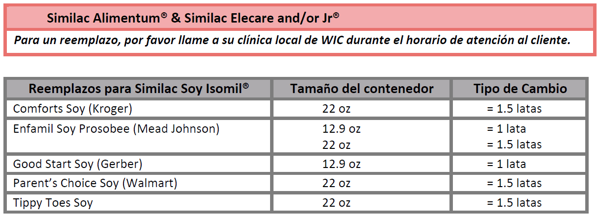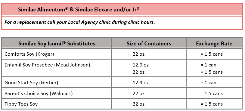 Call your local WIC clinic to discuss formula substitute options. If your clinic has issued you the Substitute Formula benefit, please see the Substitute Formula section below.