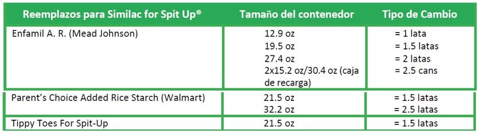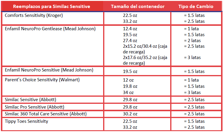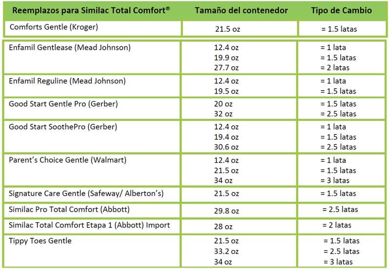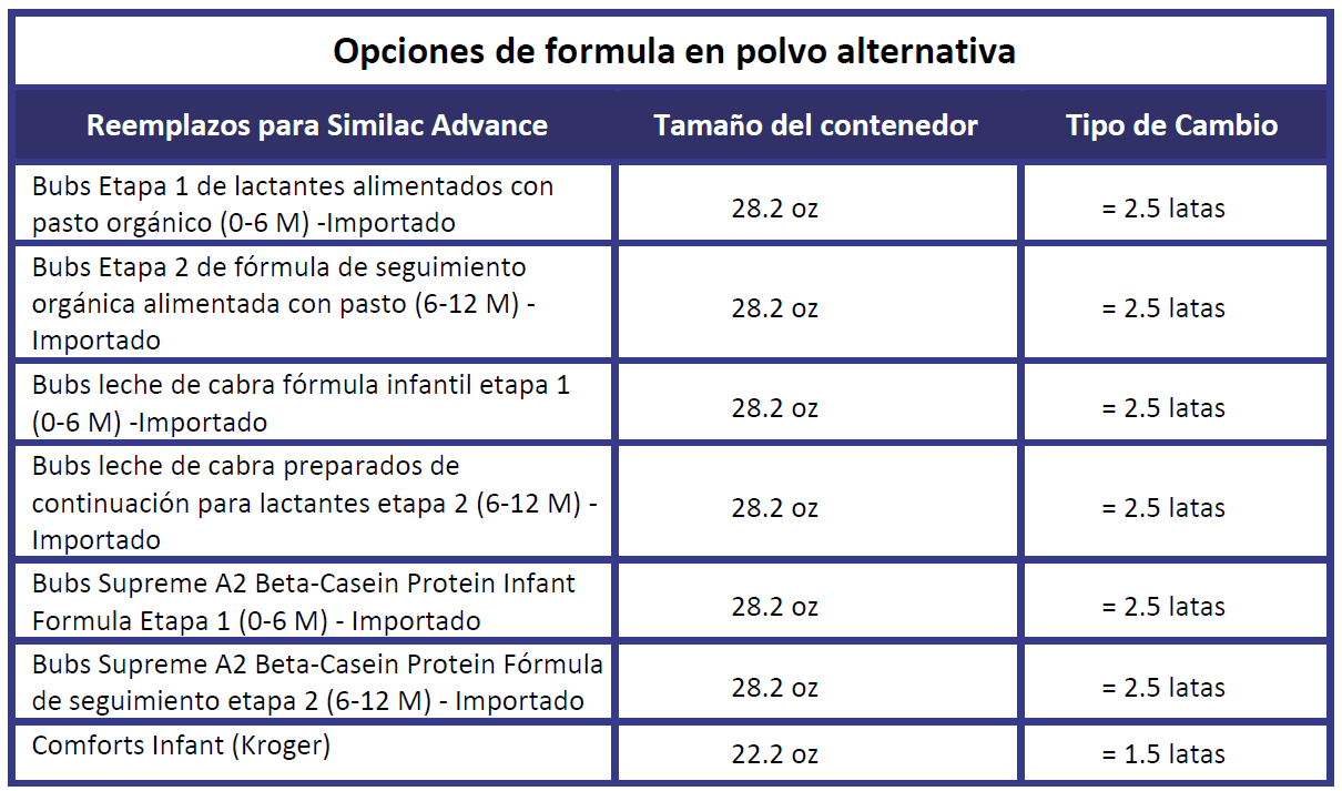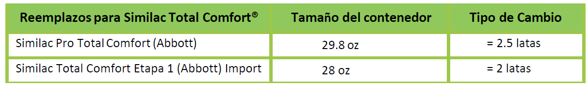- Si usted quiere comprar una formula parecida, encuentre la formula regular en la tabla y escoja
