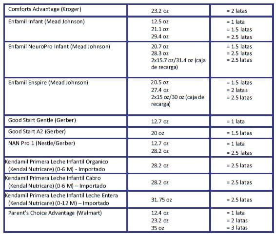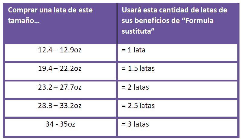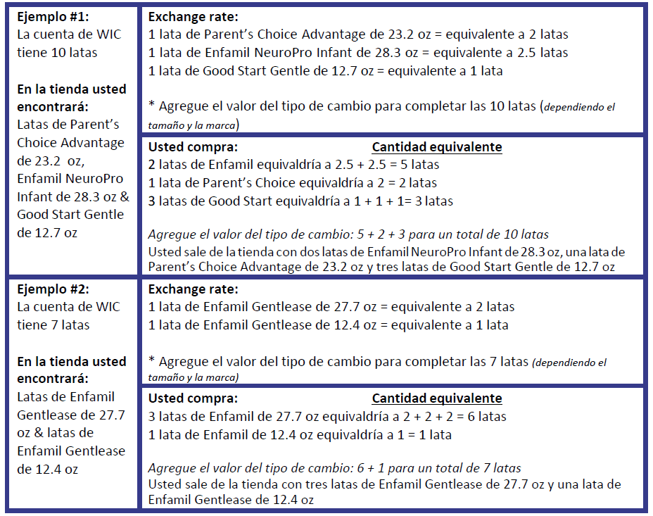 una de las opciones citadas abajo. - La aplicación de WICShopper le puede ayudar a saber cuántas latas de formula puede comprar.