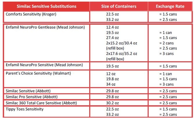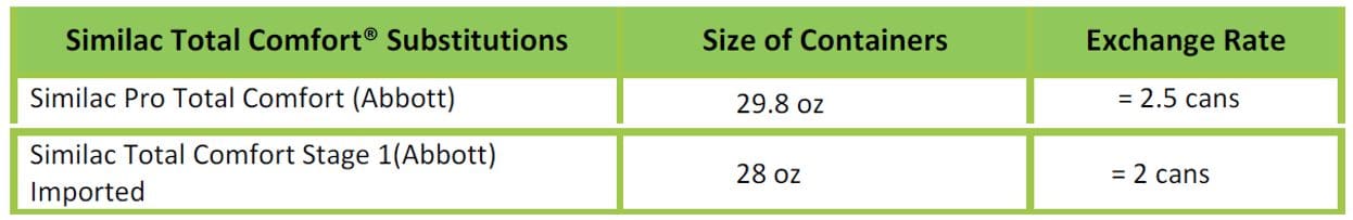 Beginning March 1st, 2023 non-Similac formulas will no longer be available as substitutes.