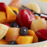 Pour sauce over fruit salad. Mix to coat fruit. If using, mix in mint, coconut, and almonds.
