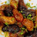 Seasoned roasted fingerling potatoes drizzled with a spiced honey topped with fresh chopped green onions.